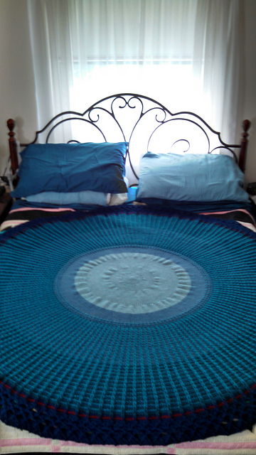 I believe I mentioned in an earlier post that last year I participated in the Eat.Sleep.Knit Yarnathon, in their group on Rav. Of course, I didn't really start doing anything until April or May, so I didn't do as much as I might have, but I did complete a really cool blanket that looks fabulous on the couch in my living room, and is really warm!